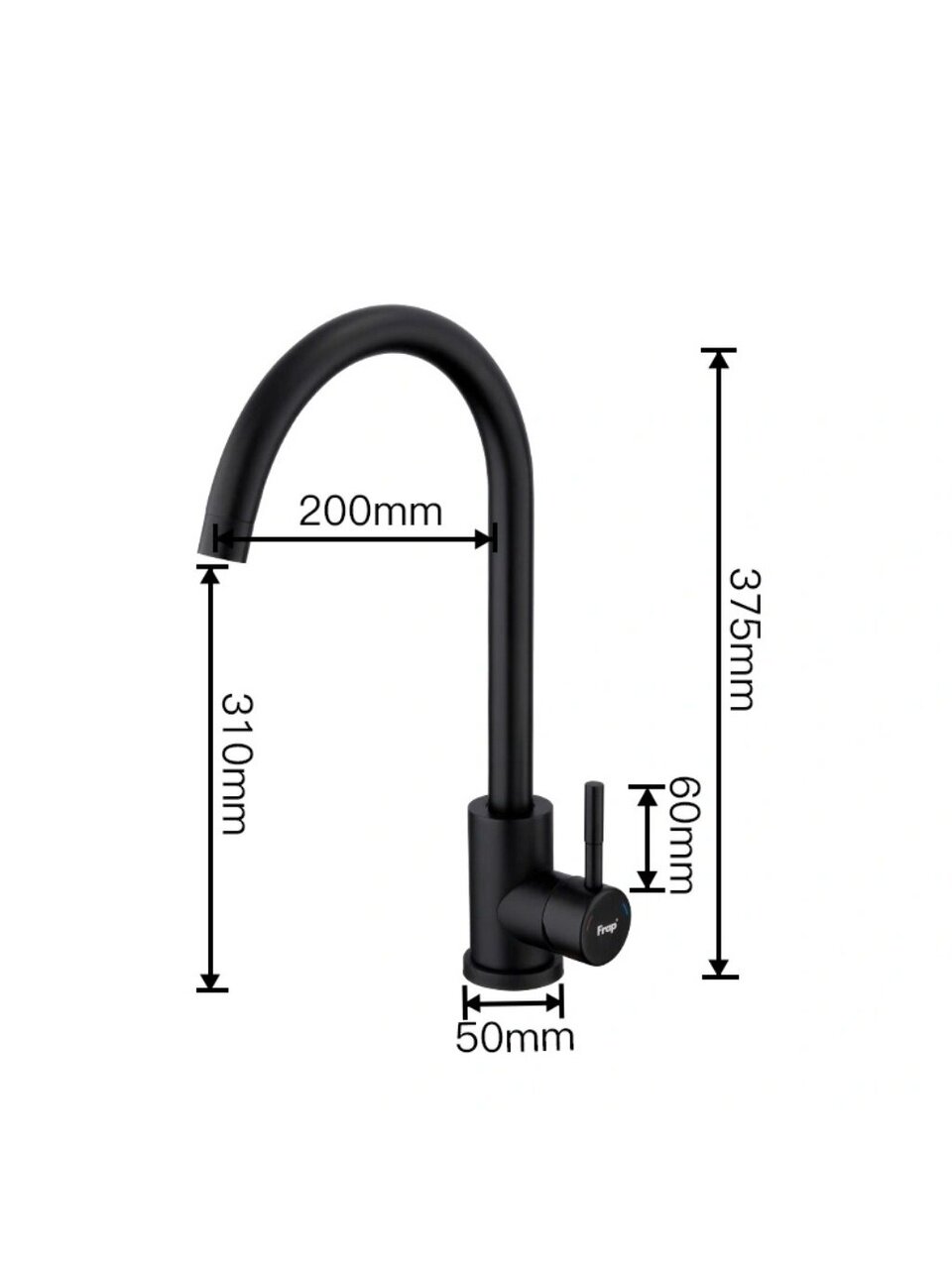 Смеситель для кухни Frap F40899-4: стильный черный дизайн, надежный керамический картридж, оптимальная высота излива 25,7 см для комфорта на кухне.