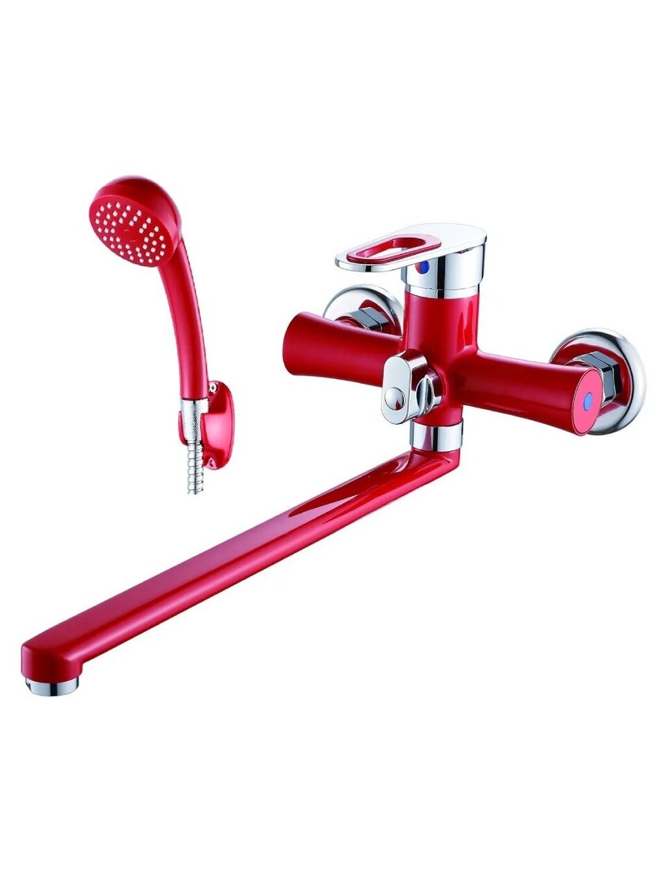 Смеситель для ванны Эверест B22-274C: стильный красный дизайн, долговечный цинковый корпус, плавное управление — решение для современной ванной.