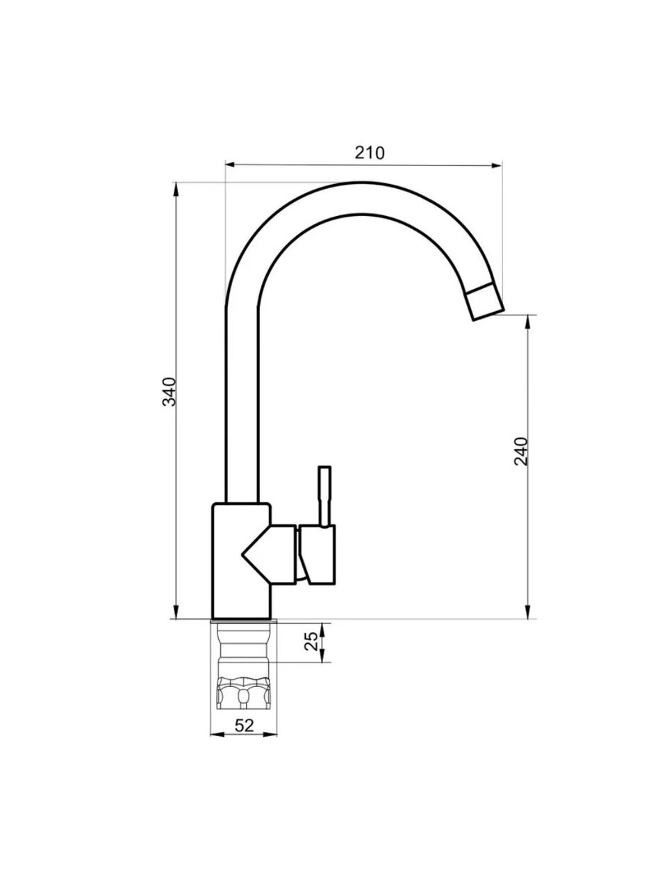 Высота излива — 24 см, длина — 21 см. Это позволяет комфортно мыть крупную посуду и наполнять высокие емкости.