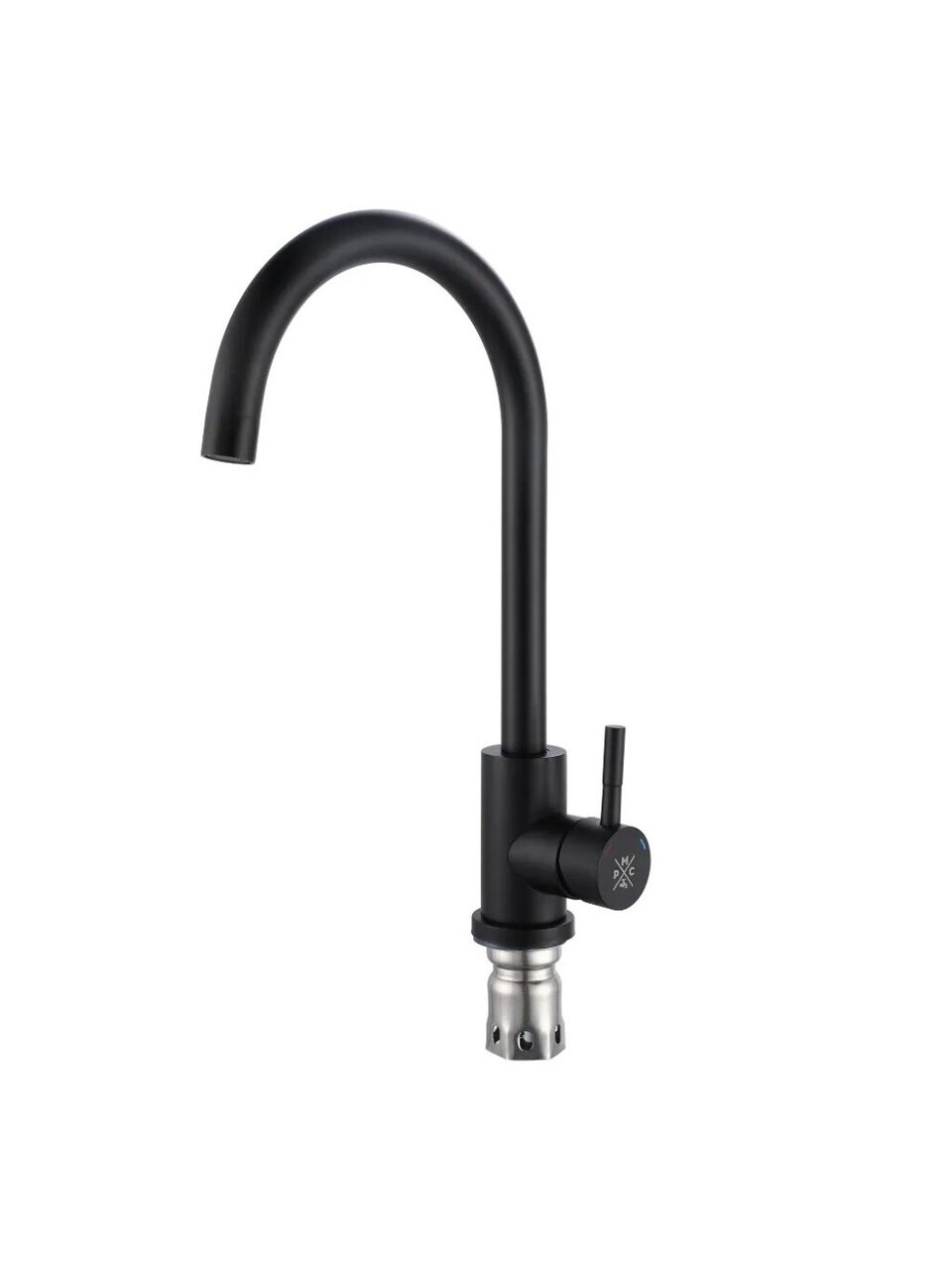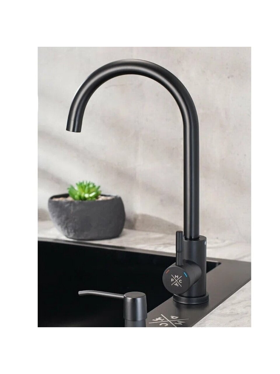 Смеситель для кухни РМС SUS124BL-017F: стильный черный дизайн, долговечная нержавеющая сталь, плавный поворотный излив 24 см — оптимальное решение для современной кухни.