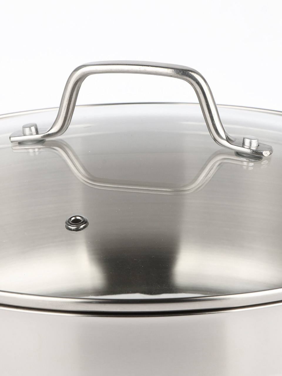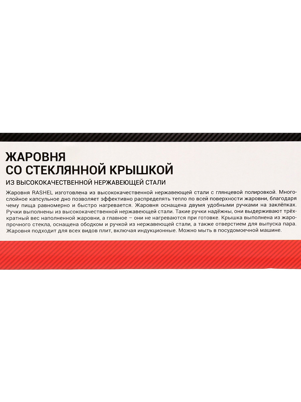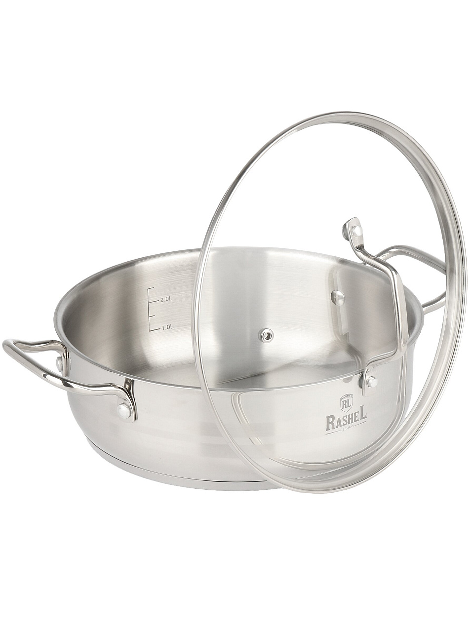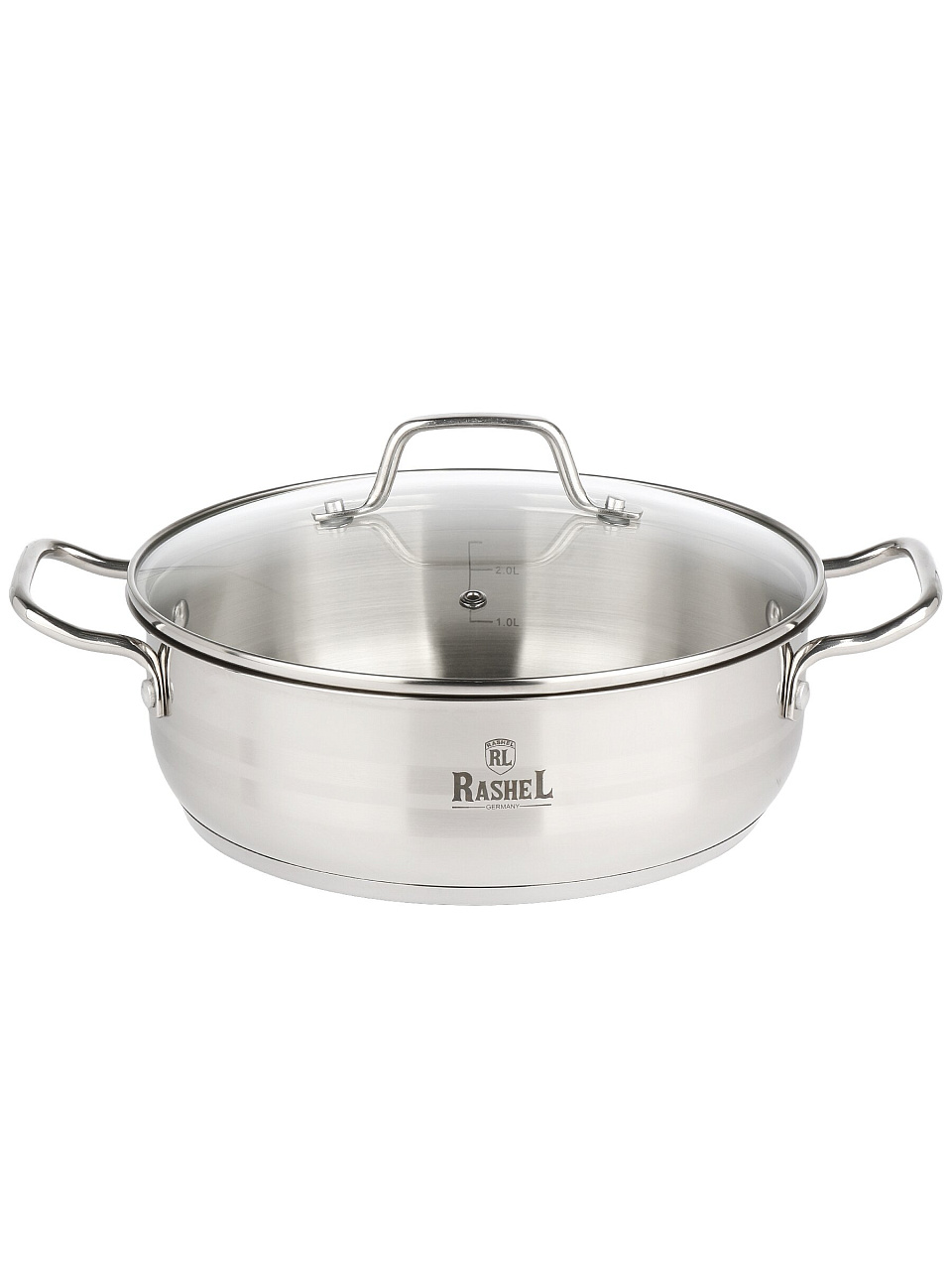 Жаровня из нержавеющей стали RasheL 24 см — универсальное решение для индукционных плит и любых кухонь: долговечность, стеклянная крышка, 3.5 л объёма.