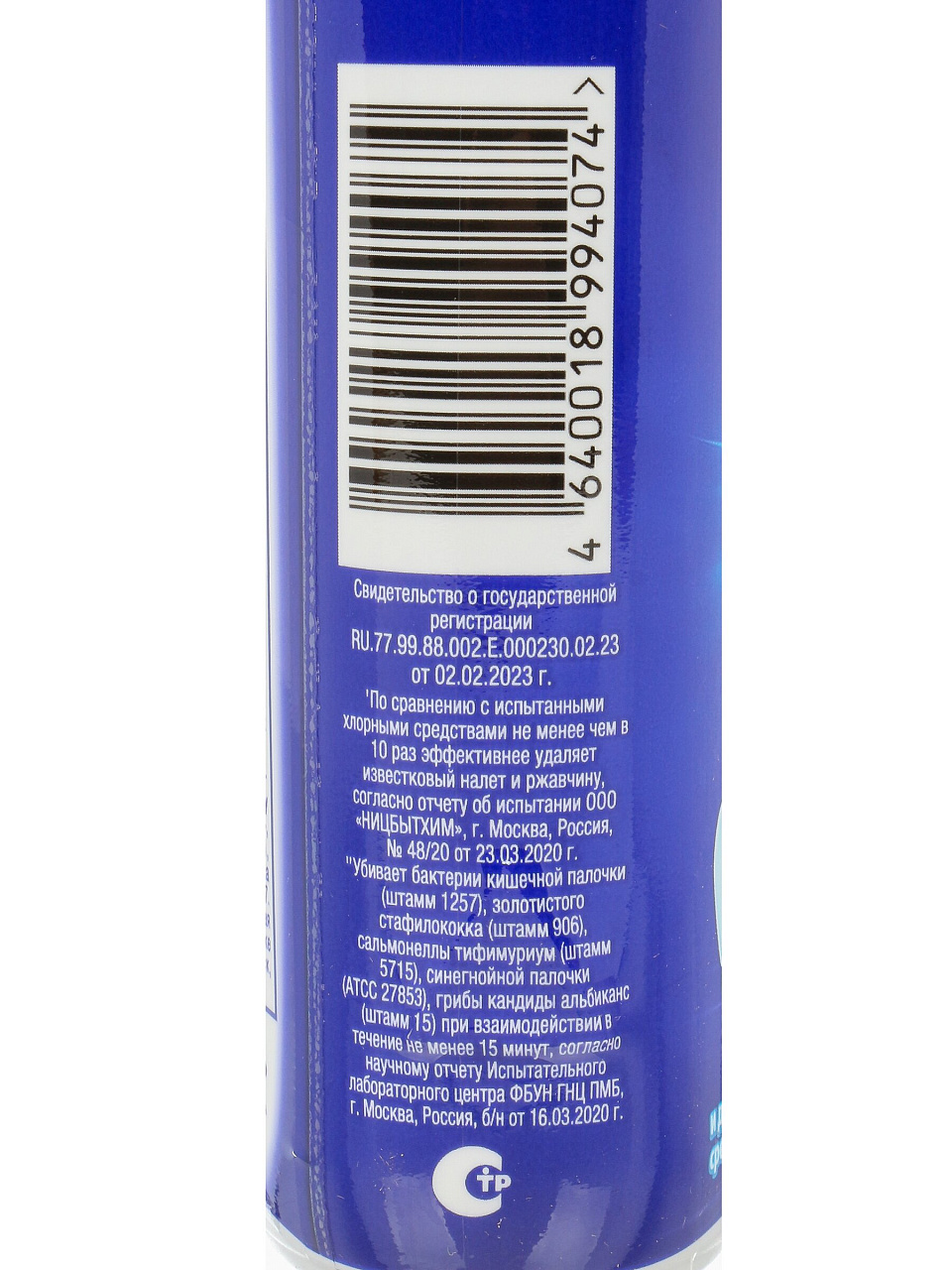 5% или более, но менее 15%: соляная кислота; менее 5%: амфотерные ПАВ, катионные ПАВ, неионогенные ПАВ, ароматизатор.