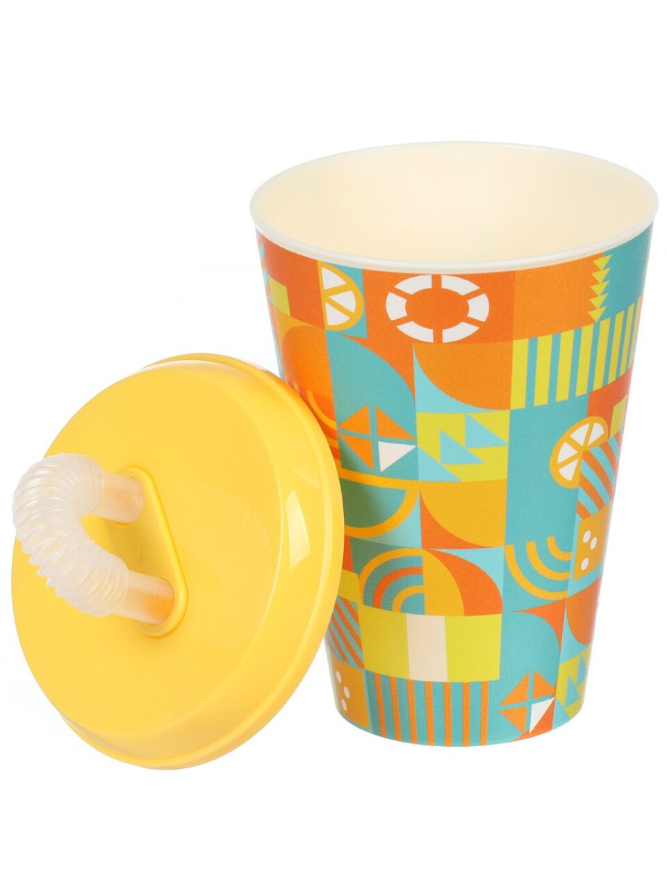 - Яркий дизайн «Геометрия» с крышкой и трубочкой — удобно для напитков на ходу и защиты от проливаний
