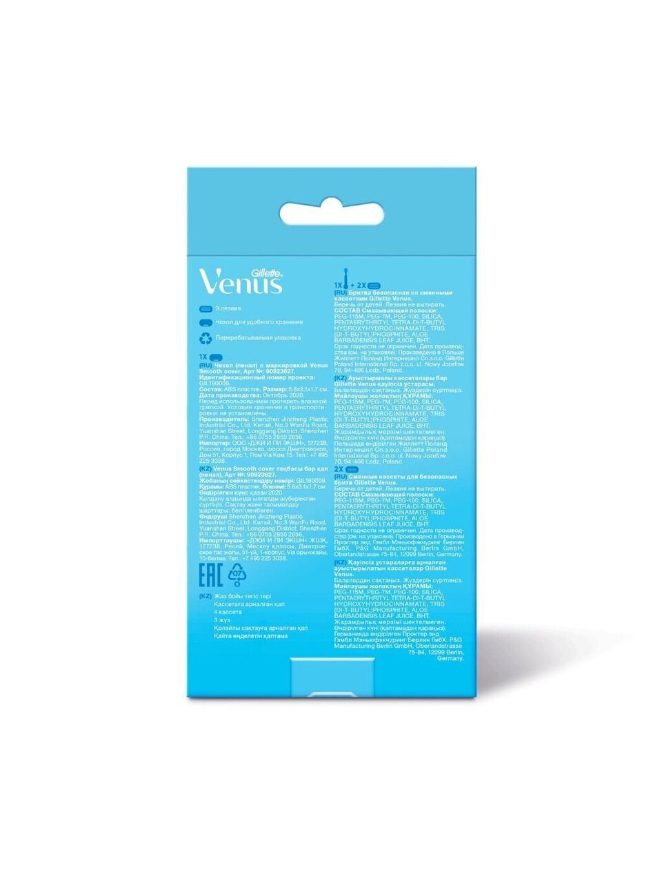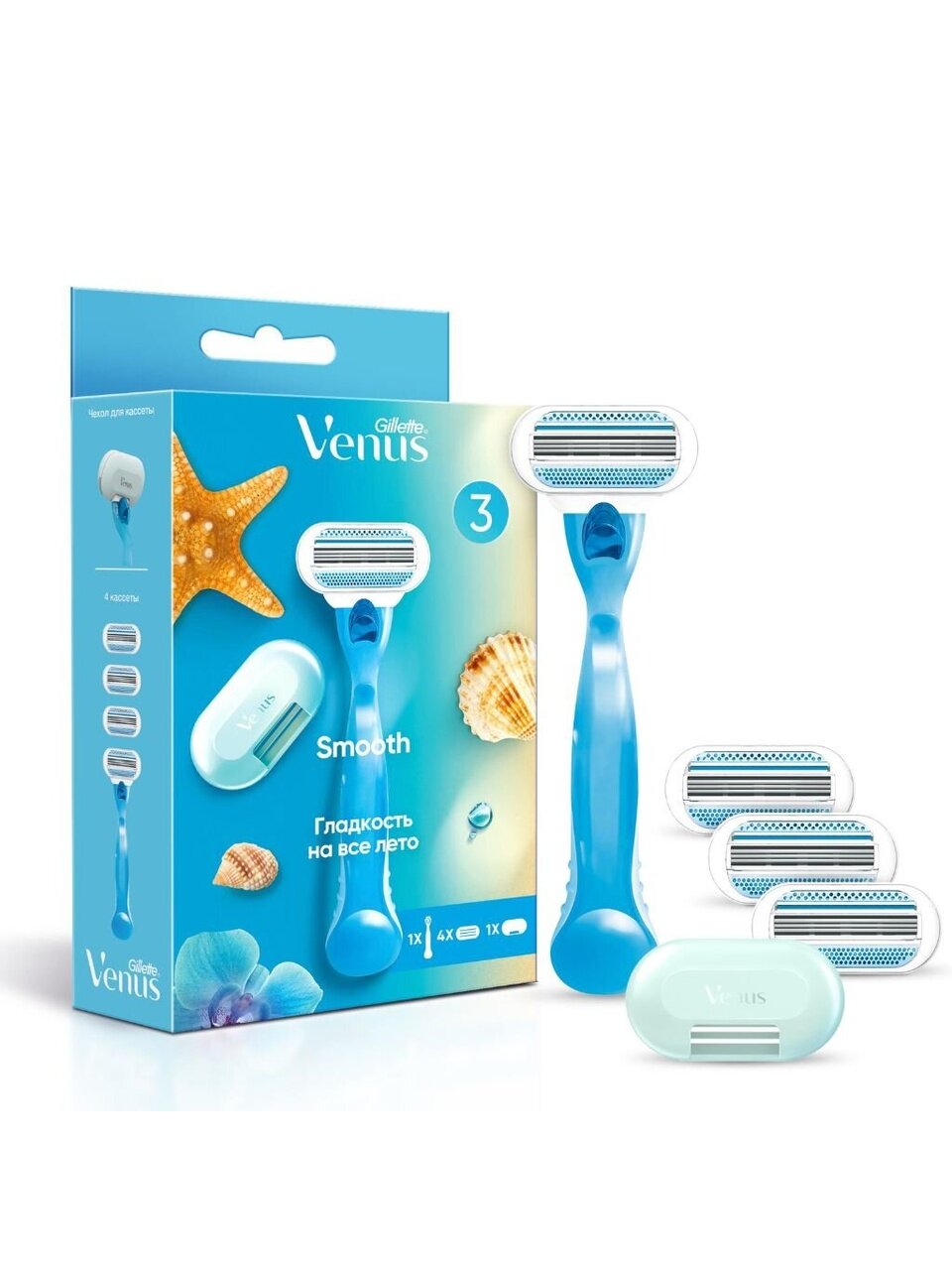 Женская бритва Gillette Venus Smooth - гладкость по доступной цене! Благодаря трем лезвиям и разглаживающим кожу защитным подушечкам вокруг лезвий бритва обеспечивают гладкое и чистое бритье одним движением.