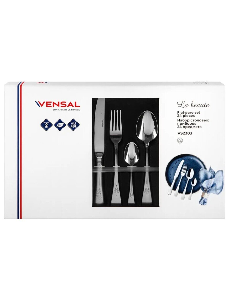 Премиальный набор столовых приборов Vensal 2303VS на 6 персон: 24 предмета из нержавеющей стали в подарочной упаковке — идеальный подарок и стиль для вашего стола.