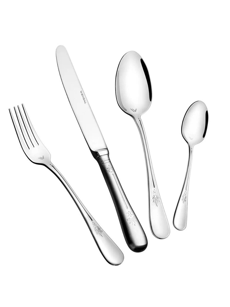 Набор столовых приборов из нержавеющей стали Vensal 2303VS — это оптимальное решение для тех, кто ищет долговечность, стиль и универсальность. Каждый предмет выполнен из цельнометаллической стали, что предотвращает появление пятен и сохраняет блеск даже после многократного мытья в посудомоечной машине. Серебристый цвет и классический дизайн гармонируют с любым сервированием, а фигурные ручки добавляют изысканности.