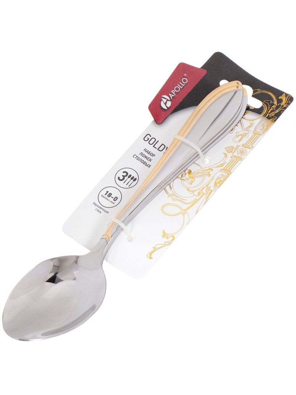 Ложка столовая Apollo Goldy GLD-43 (3 шт): стильный набор из нержавеющей стали с золотым напылением — долговечный выбор для дома и подарка