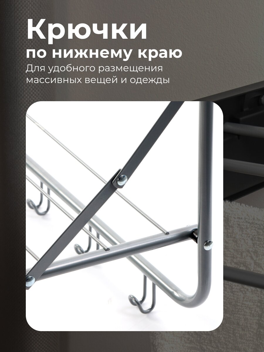 Максимальная нагрузка составляет 6 кг благодаря прочным металлическим прутьям и надёжной навесной конструкции.