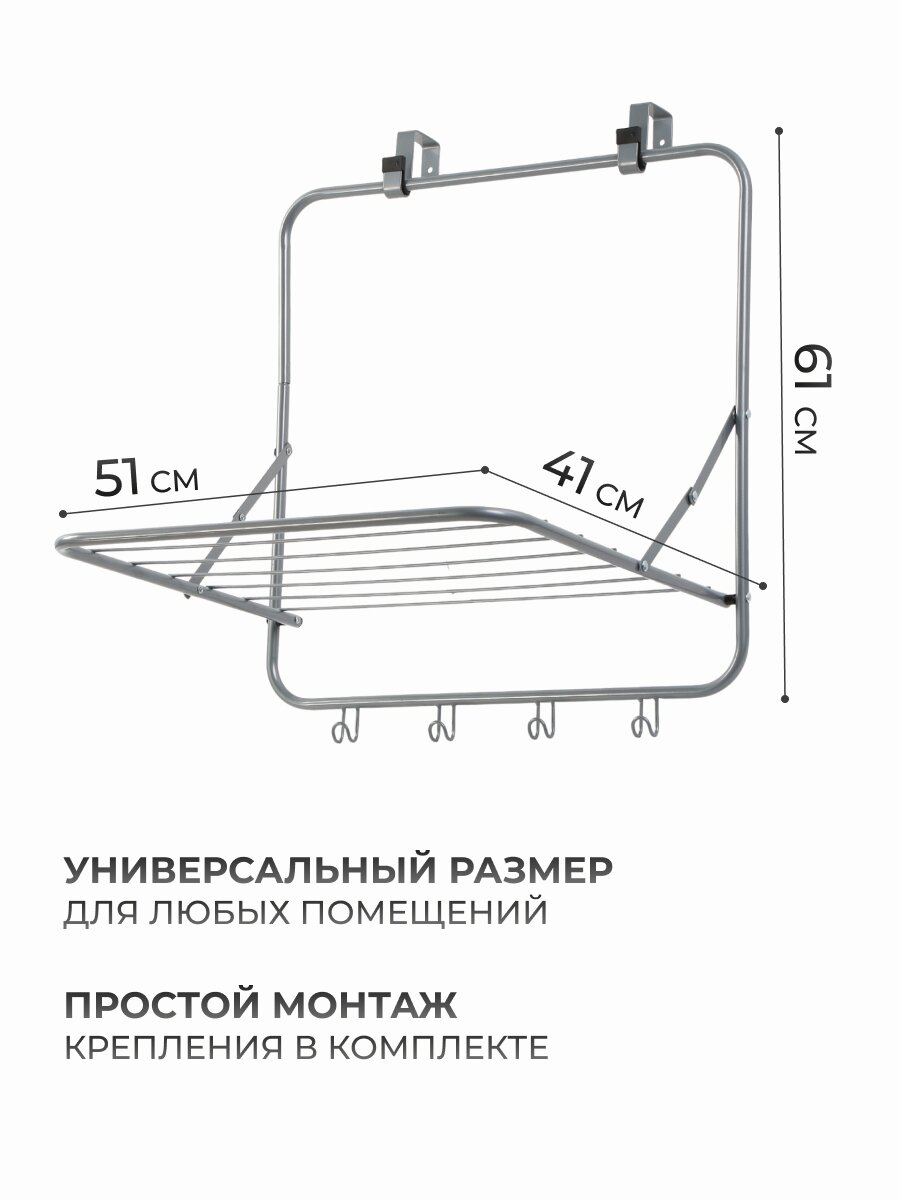 - Навесная сушилка легко крепится на дверь — не требует сверления и подходит для любых помещений.