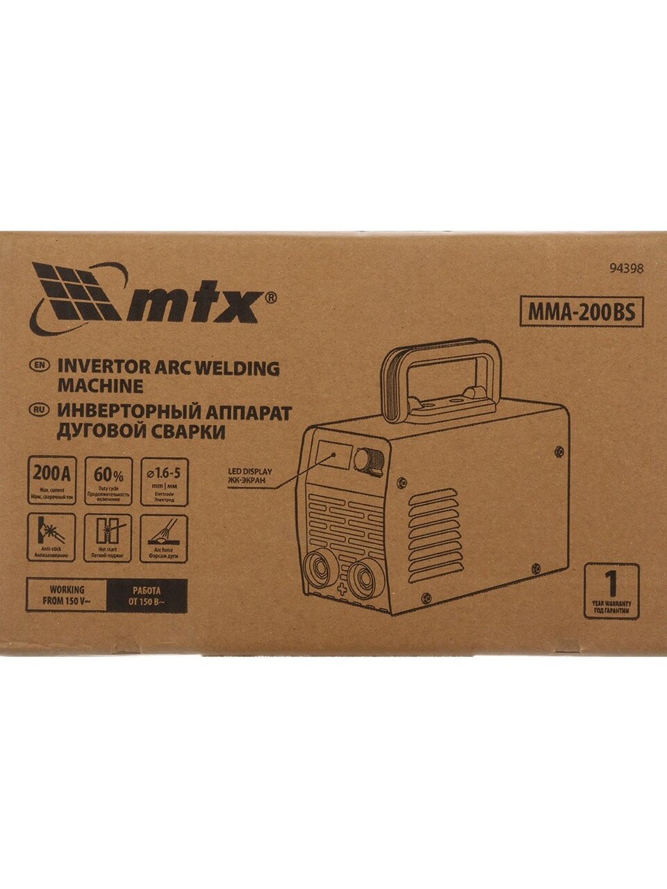 Сварочный аппарат инвертор MTX MMA-200BS 200 А — компактное решение для дома и дачи: стабильная дуга, экономия электроэнергии, гарантия 12 мес.
