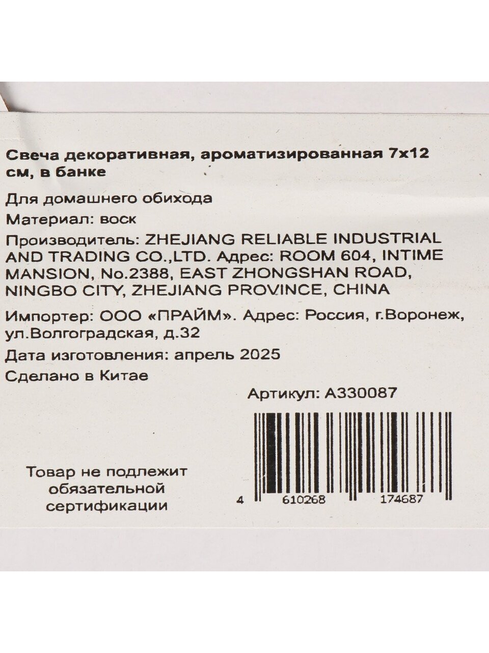 Ароматизированная декоративная свеча 7х12 см в банке: стильный акцент для дома и дачи, идеальный подарок, приятный аромат и безопасное использование.