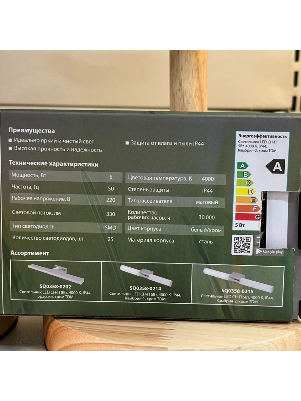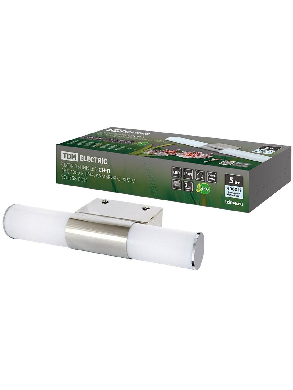 Вы можете приобрести «Светильник светодиодный, TDM Electric, Камбрия-2 CH-П, 5 Вт, 4000 К, 330 Лм, IP44, 22.5х8.5х5 см, для ванной комнаты, хром, SQ0358-0215» и другие товары в нашем интернет-магазине в Тамбове по низким ценам и с бесплатным самовывозом.