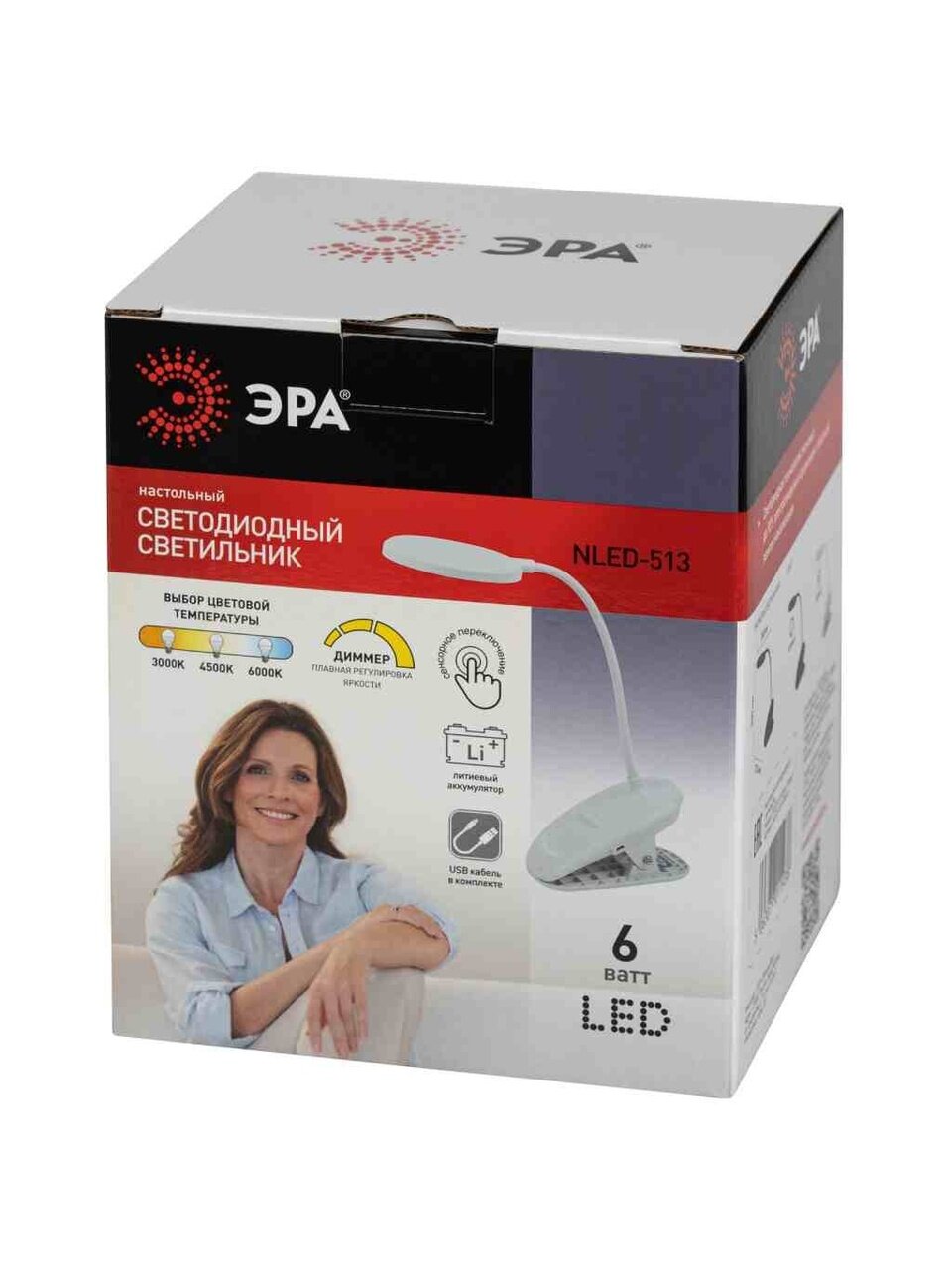 Вы можете приобрести «Светильник настольный 6 Вт, аккумуляторный, белый, Эра, NLED-513-6W-W, Б0057209, на прищепке» и другие товары в нашем интернет-магазине в Тамбове по низким ценам и с бесплатным самовывозом.