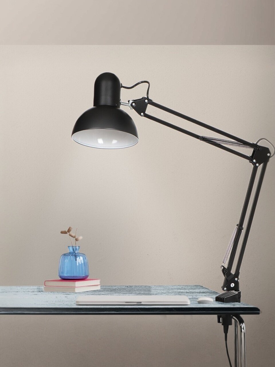 Настольный светильник Lofter служит как осветительный прибор дома или в офисе. Изготовлен из прочного металла. Двухколенная конструкция корпуса позволяет регулировать высоту и положение плафона, тем самым направляя свет под необходимым углом. Крепится светильник с помощью струбцины к столу или к полке. Патрон Е27 применяется с лампами накаливания или с энергосберегающими лампами. Настольная лампа с кабелем 2x0.5 мм2 и длиной 1,20 м, евровилка.