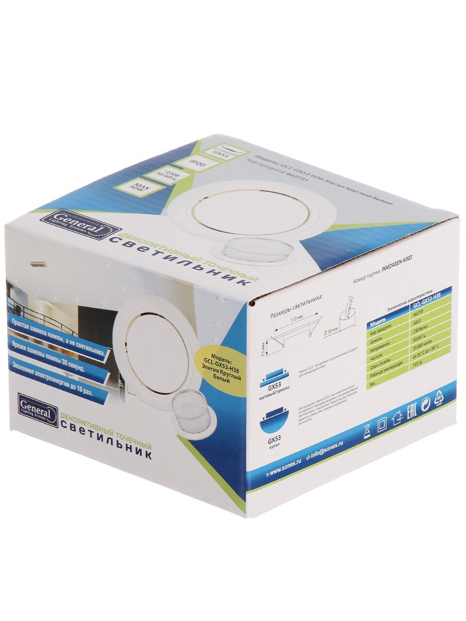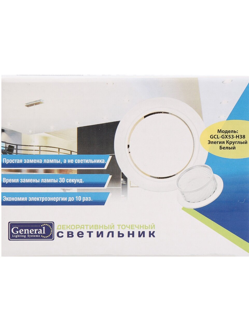Вы можете приобрести «Светильник встраиваемый Элегия, GX53, круглый, белый, General Lighting Systems, GCL-GX53-H38» и другие товары в нашем интернет-магазине в Казани по низким ценам и с бесплатным самовывозом.
