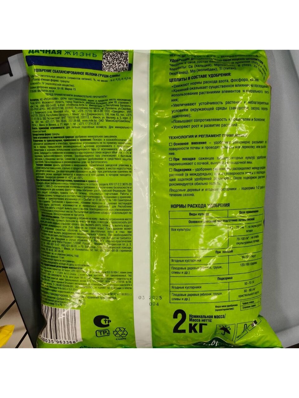 - Тип: удобрение.