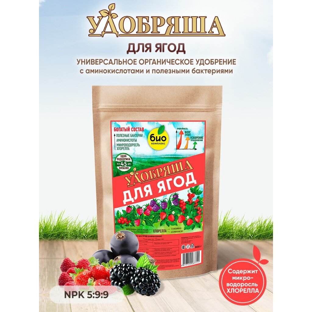 "Удобряша" для ягод – это органическое удобрение с аминокислотами и полезными почвенными бактериями. Разработано с учетом потребностей в питании всех видов ягодных культур: земляника, клубника, смородина, крыжовник, жимолость, малина и голубика.
