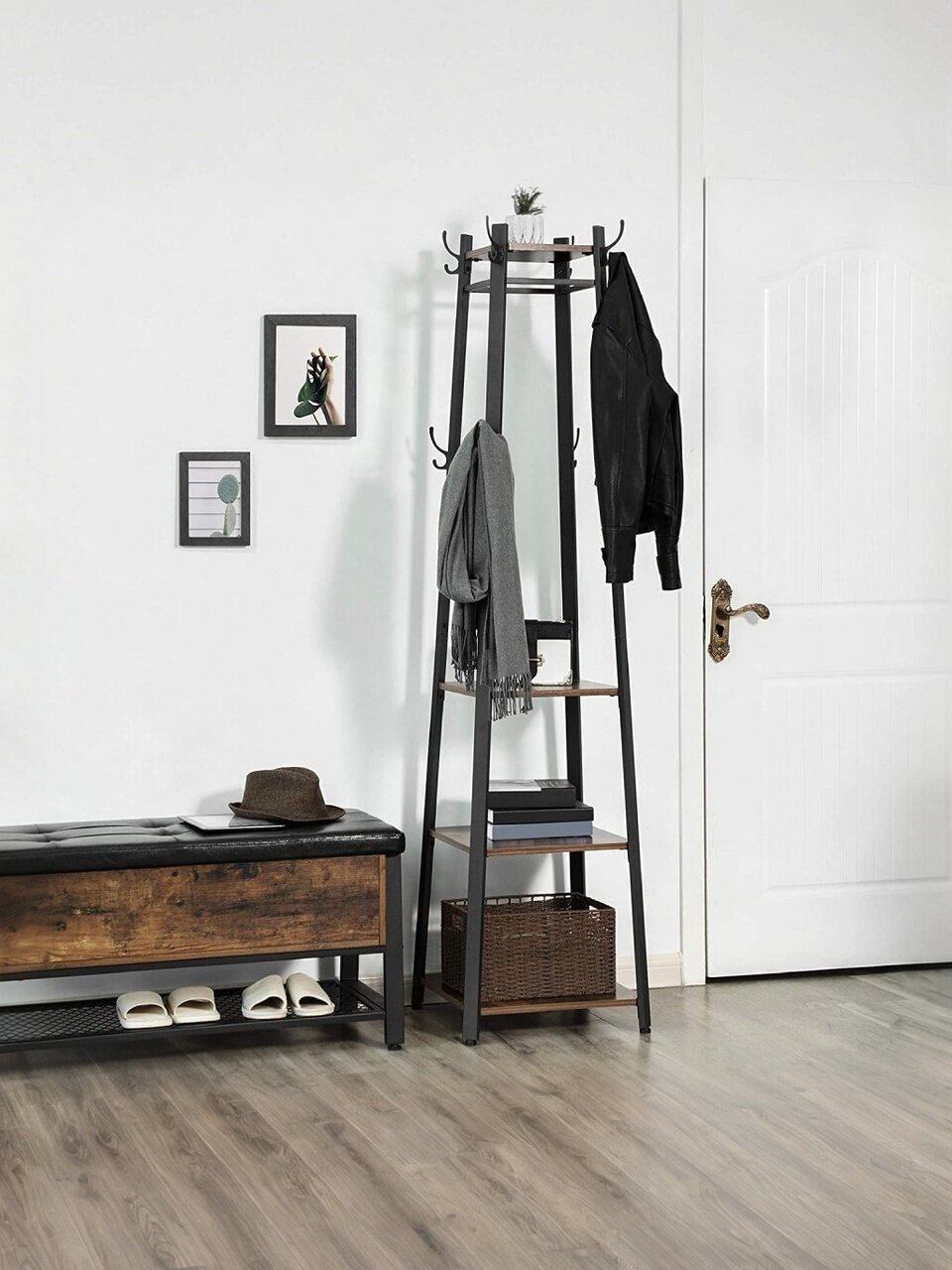 - Два зайца одним выстрелом: эта стильная вешалка для верхней одежды придает вашему входу промышленный шарм и в то же время создает достаточно места для хранения курток, пальто, кепок и сумок.