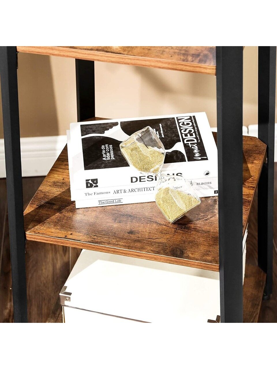 - 3 яруса полок разного размера и слегка суженные черные стальные ножки вместе образуют устойчивую конструкцию и добавляют нотку шарма вашей комнате.