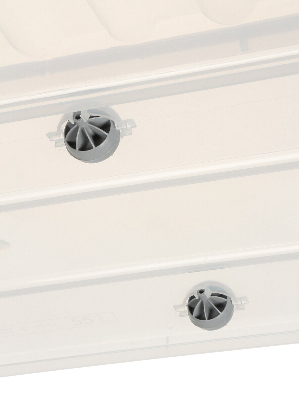 - Оптимальный объем 55 л, размеры 72×39×29,5 см, прочный пластик — выдерживает длительную эксплуатацию и частые перемещения;