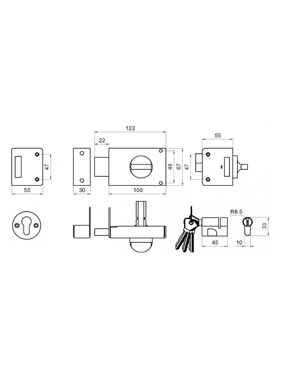 Накладной замок «Омега-ЗН-1» горизонтальный предназначен для установки на входные двери квартир, домов и общественных зданий. Подходит для монтажа на дверные полотна толщиной от 35 мм до 65 мм. Корпус и основная часть деталей выполнены из стали. Изделие прошло антикоррозийную обработку. Для отпирания и запирания используется рукоятка (задвижка выдвигается при помощи поворота рукоятки в правую сторону).