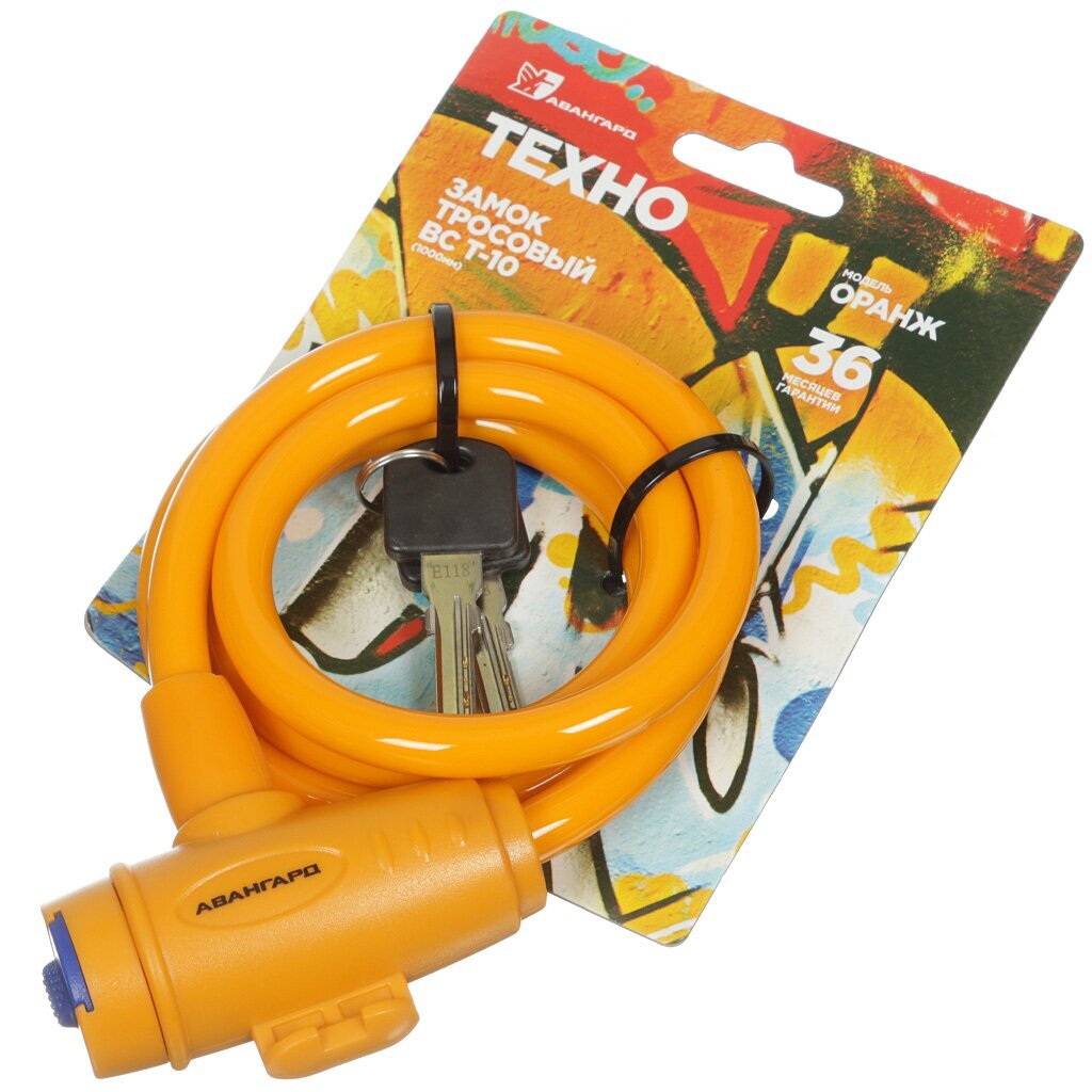 Замок велосипедный тросовый, Авангард, Техно, 1000 мм, ВС-Т10, оранжевый, 7 322