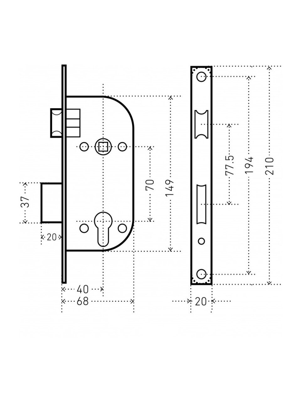 - Удаление ключевого отверстия (Backset): 40 мм;