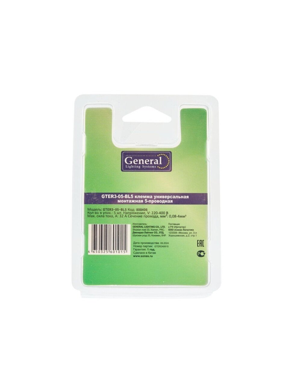 Вы можете приобрести «Клемма монтажная, универсальная, 5-проводная, уп. 5 шт, 0.08-4 мм², General Lighting Systems, 800406» и другие товары в нашем интернет-магазине в Борисоглебске по низким ценам и с бесплатным самовывозом.