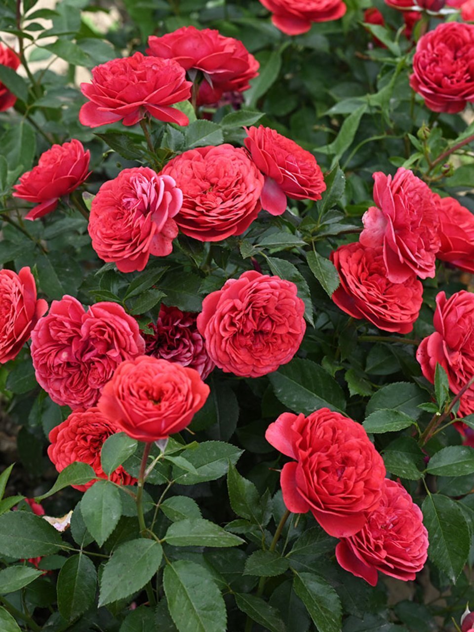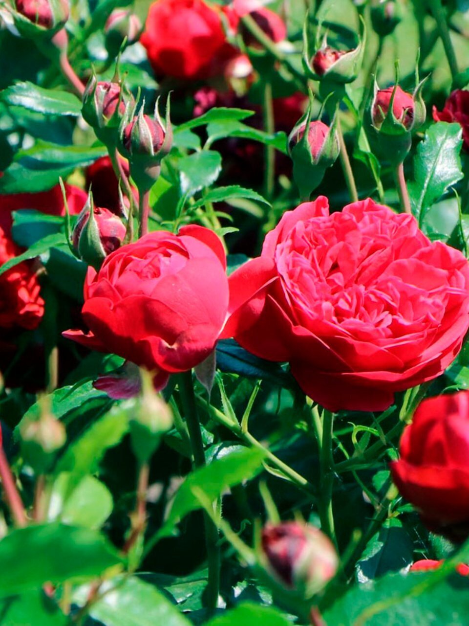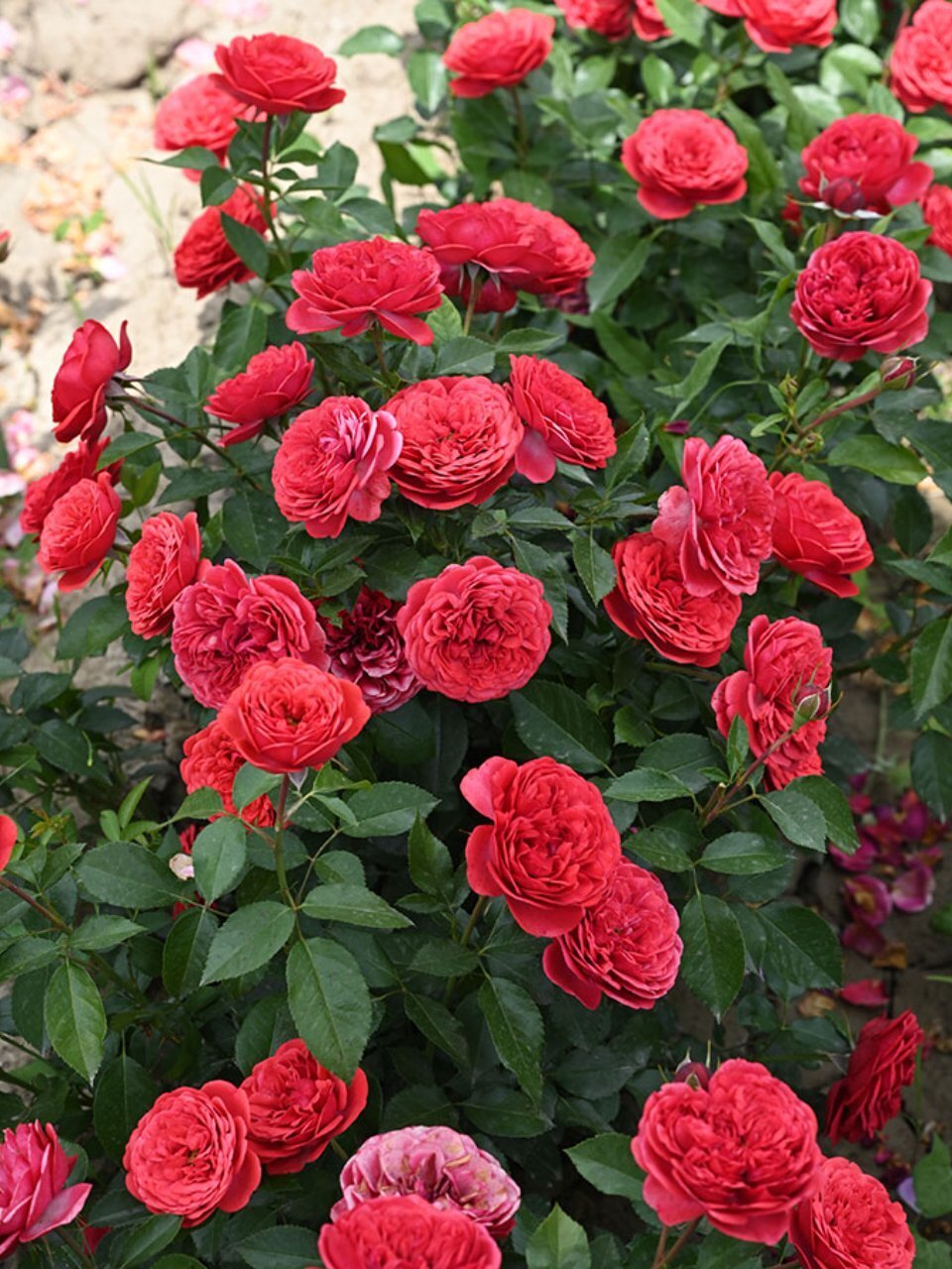 - Параметры: компактные кусты, насыщенные красные цветы, высокая морозостойкость и продолжительный срок жизни.